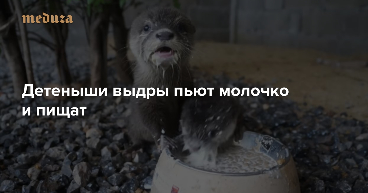 Детеныши выдры пьют молочко и пищат