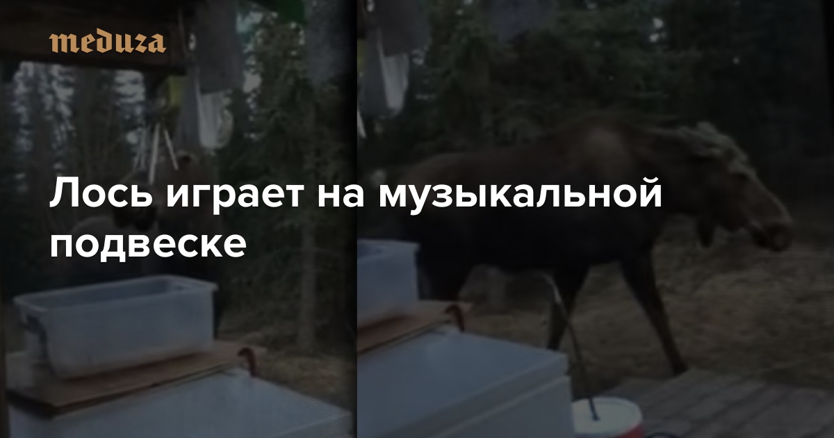 Лось на Аляске набрел на жилой дом и обнаружил у входа музыкальную подвеску (или «ветерок») — связку из предметов, которые издают перезвон на ветру. И лосю явно понравилась музыка, которую издавала подвеска: он несколько минут дергал ее носом, прежде чем отправиться дальше.