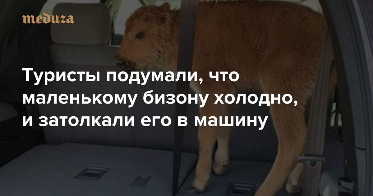 Туристы подумали, что маленькому бизону холодно, и затолкали его в машину