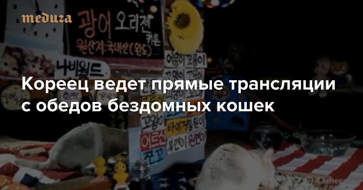 Ку Юн-Джи (Koo Eun-Je) из Южной Кореи транслирует в прямом эфире, как бездомные кошки приходят к нему поесть. Вместе с женой он готовит еду и относит в обустроенное ими место, где питаются уже больше 15 бездомных кошек.