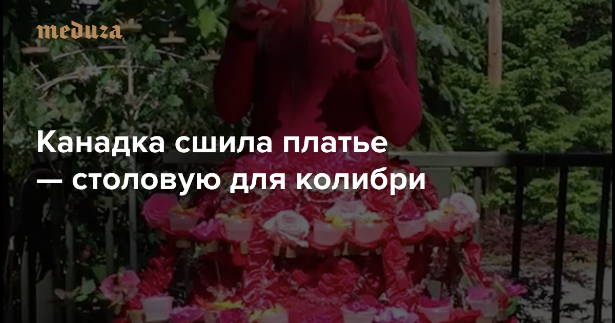 Канадская художница по костюмам Кэри Кэмпбелл показала один из своих новых нарядов. Сшитое платье скорее предназначается не для носки, а для кормления колибри. К его подолу приделаны цветы и емкости, в которые можно налить воду с сахаром, привлекающие этих птичек.