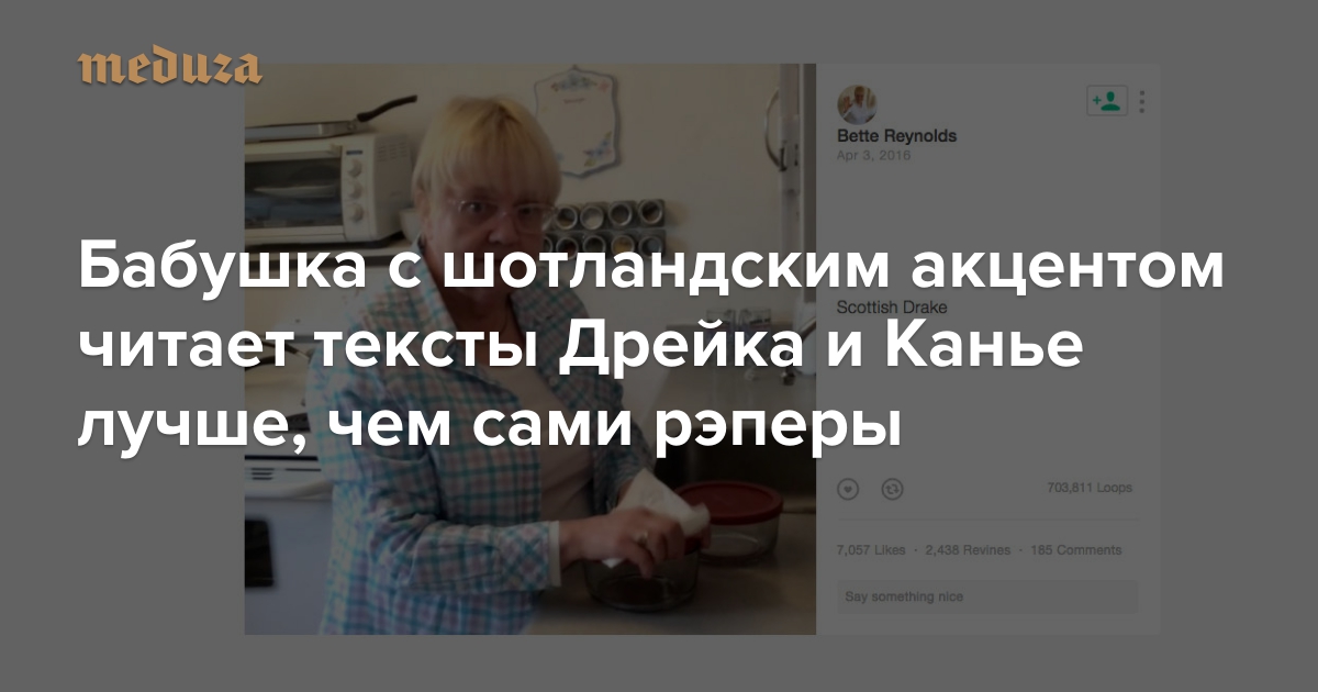 Бабушка с шотландским акцентом читает тексты Дрейка и Канье лучше, чем сами рэперы