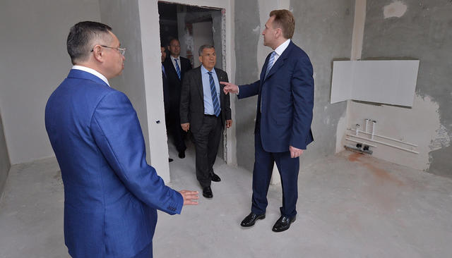 Вице-премьер Игорь Шувалов и президент Татарстана Рустам Минниханов осматривают новое жилье эконом-класса в Казани