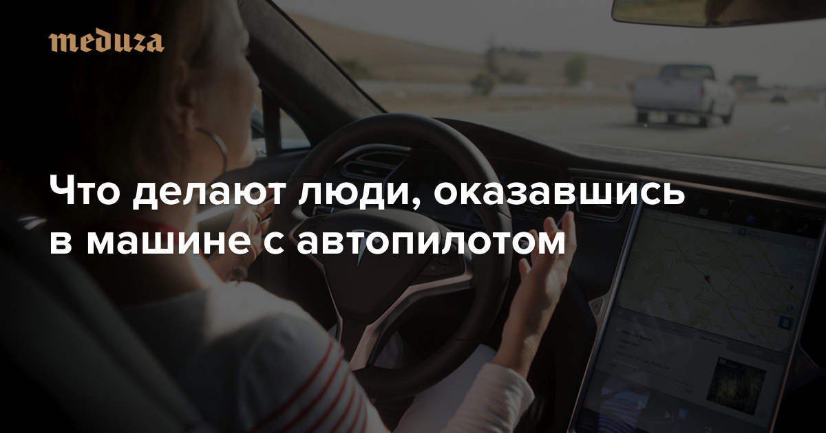 С середины октября 2015 году у владельцев электромобилей Tesla появилась возможность пользоваться функцией автопилота. Машина действительно едет сама, но водителей все равно просят следить за дорожной ситуацией и не убирать руки с руля. Тем не менее некоторые владельцы «Теслы» решаются нарушить это правило, полностью доверившись автоматике. «Медуза» собрала самые выразительные примеры того, что делают люди, оказавшись в машине с автопилотом.