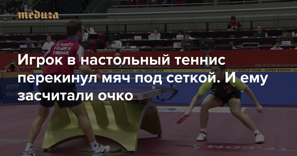 В ходе матча в рамках Мирового тура Laox Japan Open игроку в настольный теннис засчитали очко после необычного розыгрыша. Китайский спортсмен Фань Чжень Дун, играя с французом Симоном Гаузи, перехватил падавший на пол мяч и перекинул его на сторону соперника.