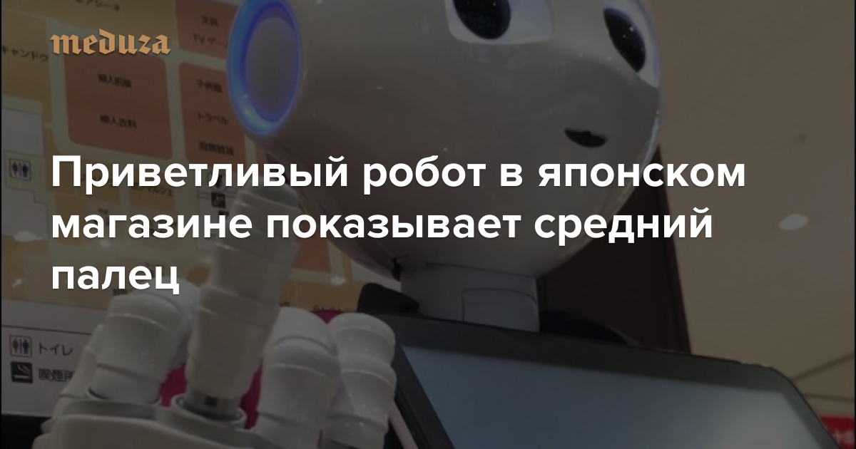 В одном из торговых центров Японии робот Пеппер, предназначенный для обслуживания клиентов, показывал посетителям средний палец и загадочно улыбался. На странное поведение робота обратил внимание посетитель торгового центра.