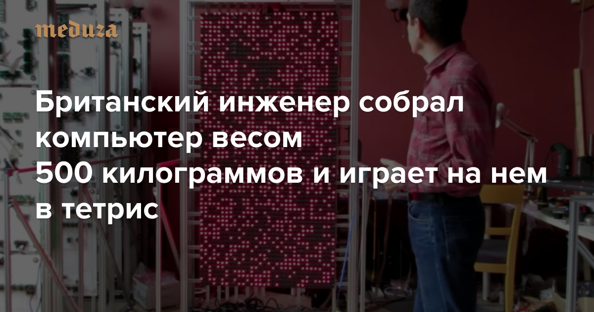 Инженер Джеймс Ньюман из Кембриджа в гостиной своего дома построил огромный компьютер и играет на нем в тетрис. Его устройство весит 500 килограммов, высота компьютера — два метра, а ширина — 10 метров.