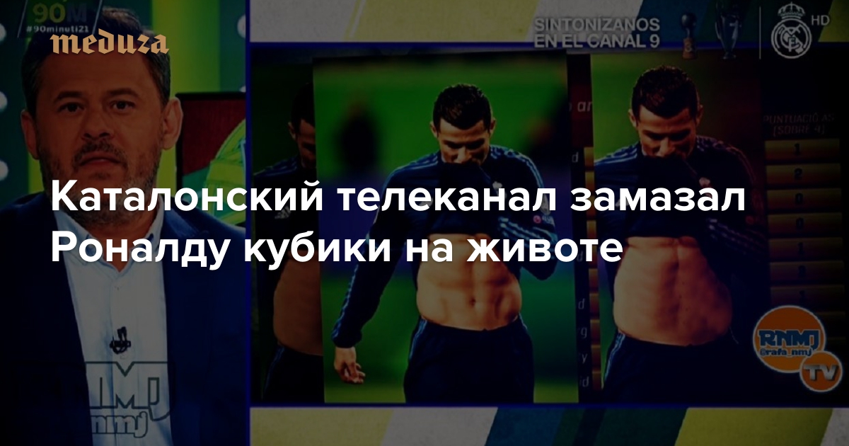 Клубный телеканал «Реала» Real Madrid TV уличил каталонский канал TV3 в редактировании фотографии Криштиану Роналду — в фотошопе португальскому футболисту замазали пресс и пупок.