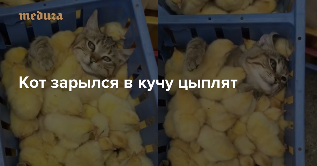 Кот зарылся в кучу цыплят