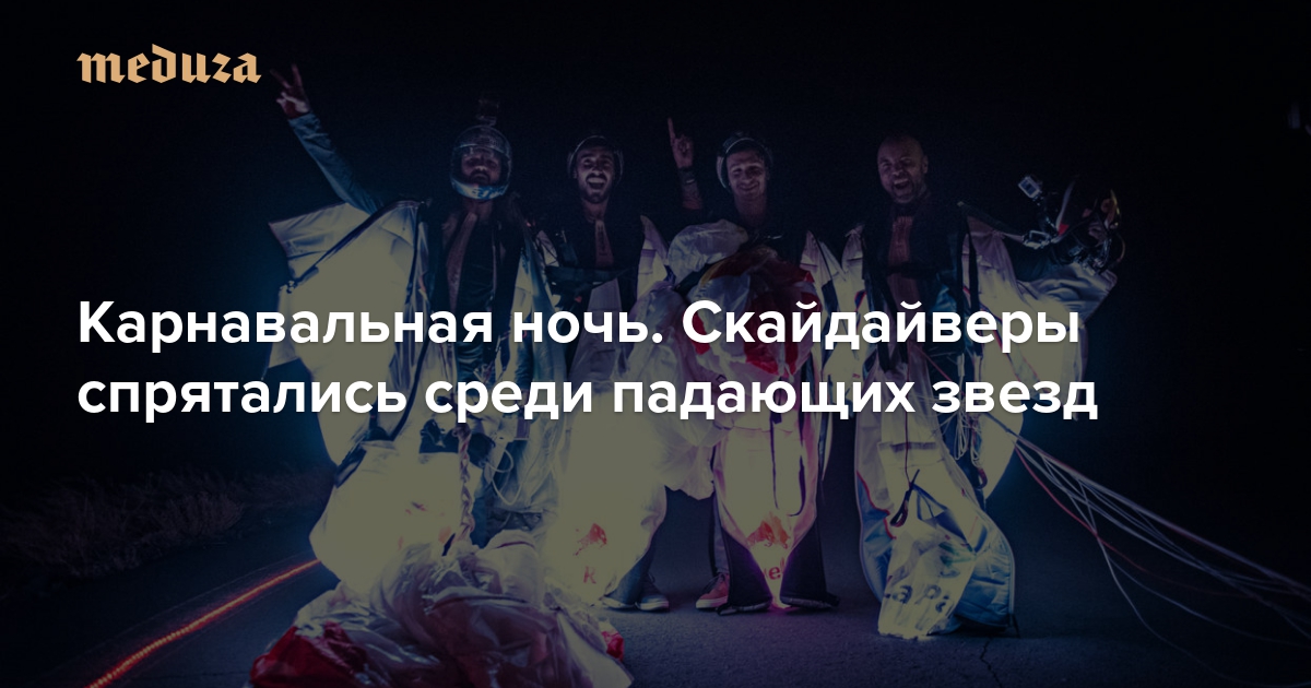 Четверо скайдайверов из Норвегии, Испании и Австрии решили поучаствовать в метеоритном дожде. В самую яркую ночь звездопада в созвездии Персея — на 13 августа — они совершили прыжок над Канарскими островами (в этой точке планеты Персеиды видны лучше всего). Спортсмены оделись в костюмы со светодиодами — и сами превратились в падающие звезды.