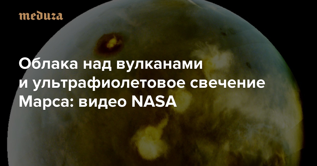 NASA опубликовало ультрафиолетовые изображения Марса, сделанные с помощью космического аппарата MAVEN. Аппарат снял облака, которые образуются над вулканами планеты, а также свечение на ночной стороне Марса.