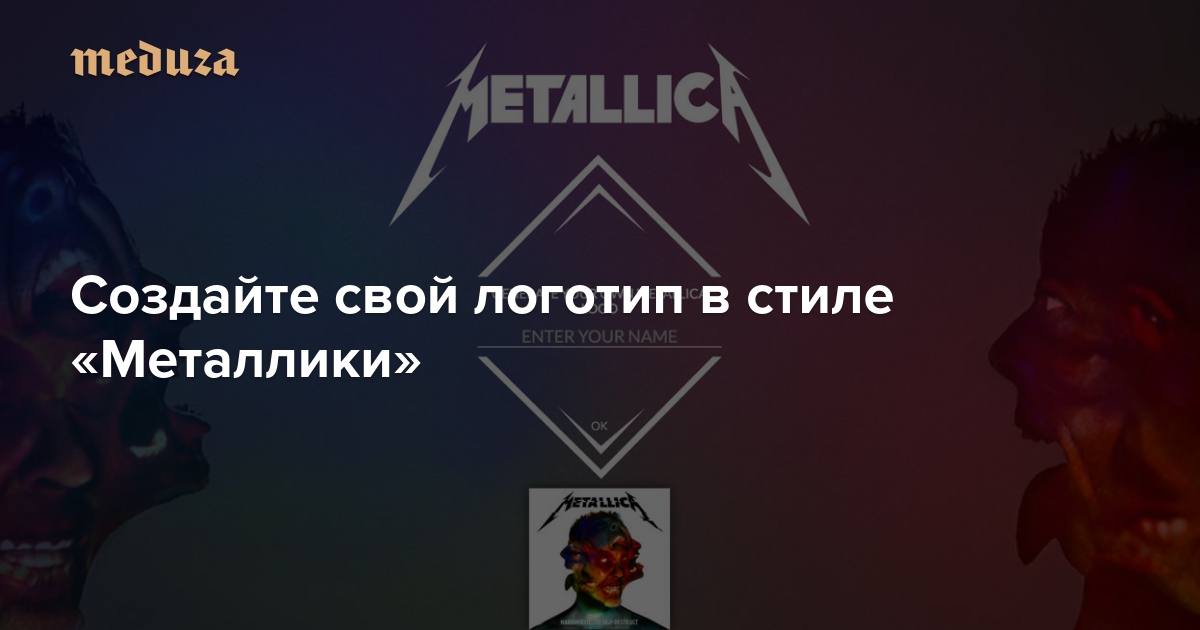 Появился сервис, превращающий любое слово в надпись, сделанную в стиле, которым написан логотип «Металлики». Достаточно ввести свое имя или какую-нибудь фразу латиницей (с кириллицей сервис не работает) и нажать OK: