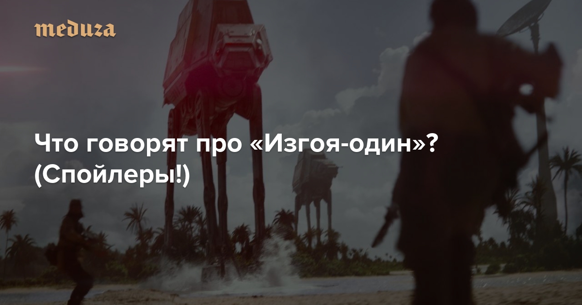 В России вышел «Изгой-один: Звездные войны. Истории» — спин-офф классической серии Джорджа Лукаса. Фильм рассказывает о том, как повстанцы украли чертежи Звезды смерти перед IV эпизодом киносаги. За первые выходные картина собрала 290 миллионов долларов (155 миллионов из них — в США и Канаде). «Медуза» рассказывает о самом интересном из того, что говорят про «Изгой-один» в первую неделю после выхода.