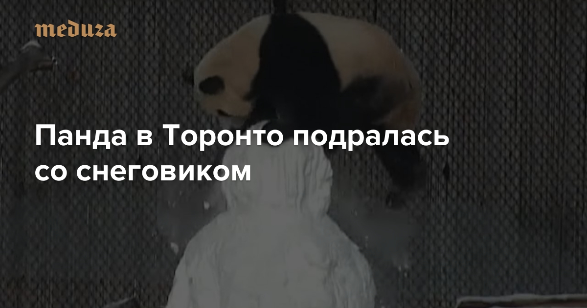 На прошлой неделе в Канаде выпал снег, и сотрудники зоопарка в Торонто решили слепить снеговика для большой панды по имени Да Мао. Но панде снеговик не понравился — Да Мао попыталась сломать его. На видео животное отламывает снеговику голову, запрыгивает на него, бьет и пинает. Но все бесполезно.