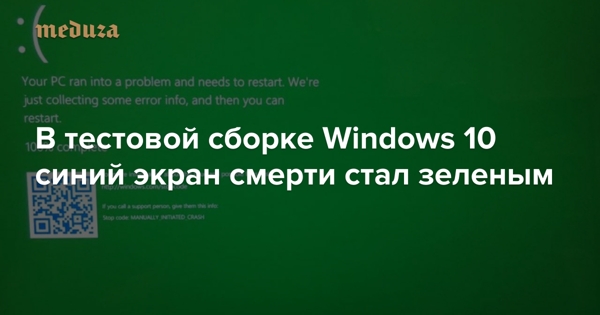 Позже Хукстра пояснил, что зеленый экран смерти увидят только те, кто участвует в программе Windows Insider, которая позволяет тестировать предварительные сборки операционной системы. Предполагается, что это поможет техподдержке быстрее понимать, в каком варианте системы произошла ошибка.