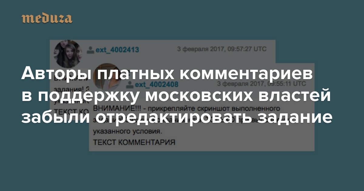 Авторы платных комментариев в поддержку московских властей забыли отредактировать задание
