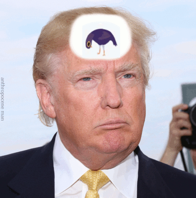 В середине февраля в социальных сетях и на имиджбордах началась война за фиолетовую птицу. Пользователи имиджбордов правых взглядов объявили о намерении «изъять» голубя из массовой культуры. Таким же образом они «изымали» лягушонка Пепе, который сперва стал ассоциироваться с белыми националистами, а затем и вовсе был приравнен в США к символу ненависти (что, впрочем, не помешало ему появиться в твиттере Трампа).