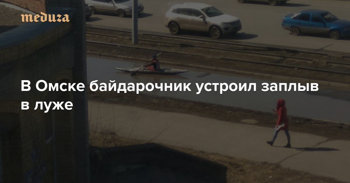 Жители Омска заметили на улице Маршала Жукова байдарочника, который устроил заплыв в большой луже около трамвайных путей.