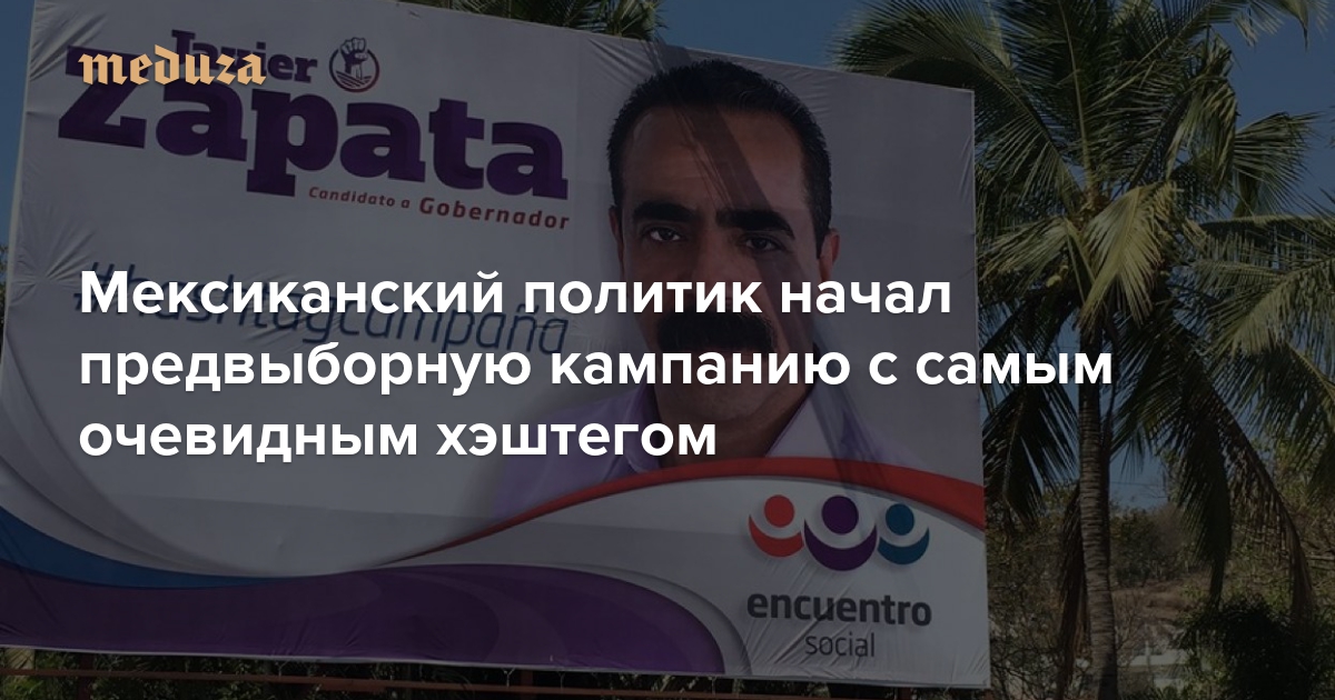 Мексиканский политик Хавьер Сапата выдвигается на пост губернатора в штате Наярит. На прошлой неделе Сапата начал предвыборную кампанию, но что-то пошло не так. На рекламных билбордах политика вместо предвыборного хэштега появилось вот это: #hashtagcampaña (#хэштегкампании). Видимо, дизайнер, работавший над макетом рекламы, просто забыл вписать нужный слоган.