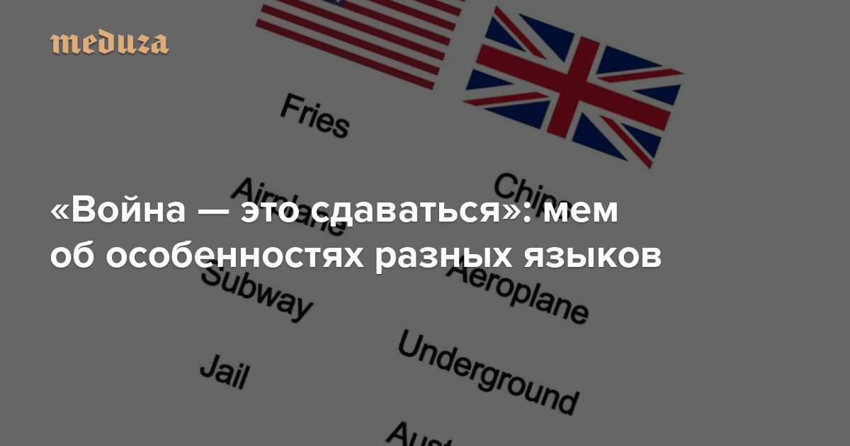Пользователи сабреддита dankmemes придумали мем, в котором сравниваются слова из разных языков. Один из самых популярных примеров — отличия между американским и британским английским. В одной стране картошку фри называют fries, а в другой — chips; самолет — соответственно airplane и aeroplane; метро — subway и underground. Американцы отправляют преступников в тюрьму, а британцы — в Австралию.