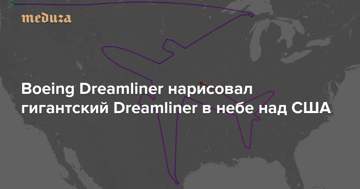 Американская компания Boeing отправила из Сиэтла пассажирский самолет Boeing 787 Dreamliner в полет над США. По маршруту, который повторяет очертания самого Dreamliner.