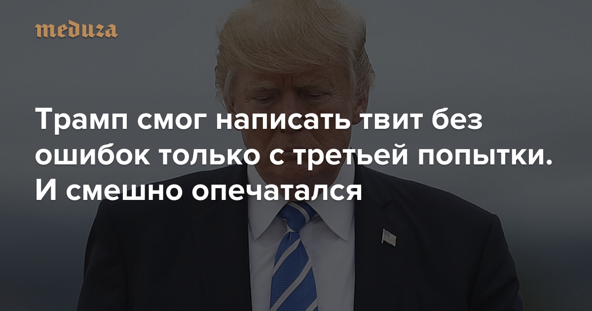 Трамп смог написать твит без ошибок только с третьей попытки. И смешно опечатался