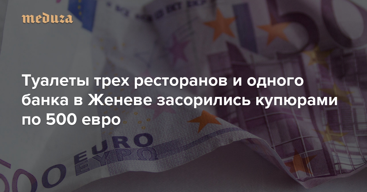 Туалеты трех женевских ресторанов и одного банка засорились после того, как кто-то бросил в них десятки банкнот по 500 евро. Это произошло несколько месяцев назад с разницей в несколько дней, но известно стало только сейчас. Первой о загадочном инциденте сообщило издание Tribune de Geneve, после чего информацию подтвердили в прокуратуре.