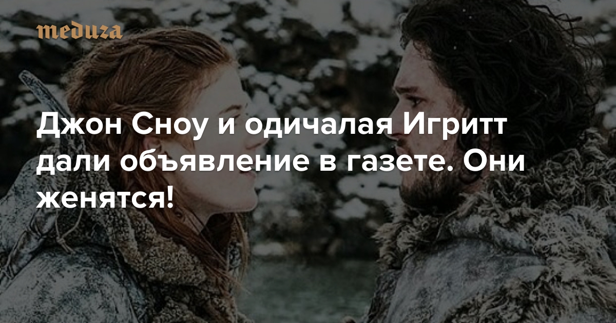 Джон Сноу и одичалая Игритт дали объявление в газете. Они женятся!