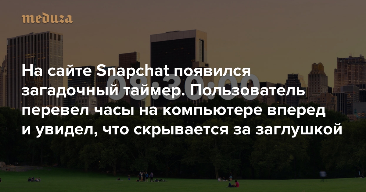 На сайте Snapchat появился загадочный таймер. Пользователь перевел часы на компьютере вперед и увидел, что скрывается за заглушкой