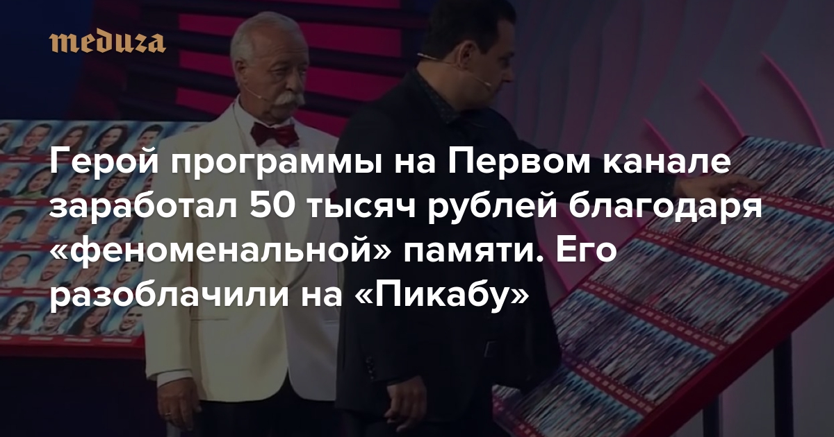 Герой программы на Первом канале заработал 50 тысяч рублей благодаря «феноменальной» памяти. Его разоблачили на «Пикабу»