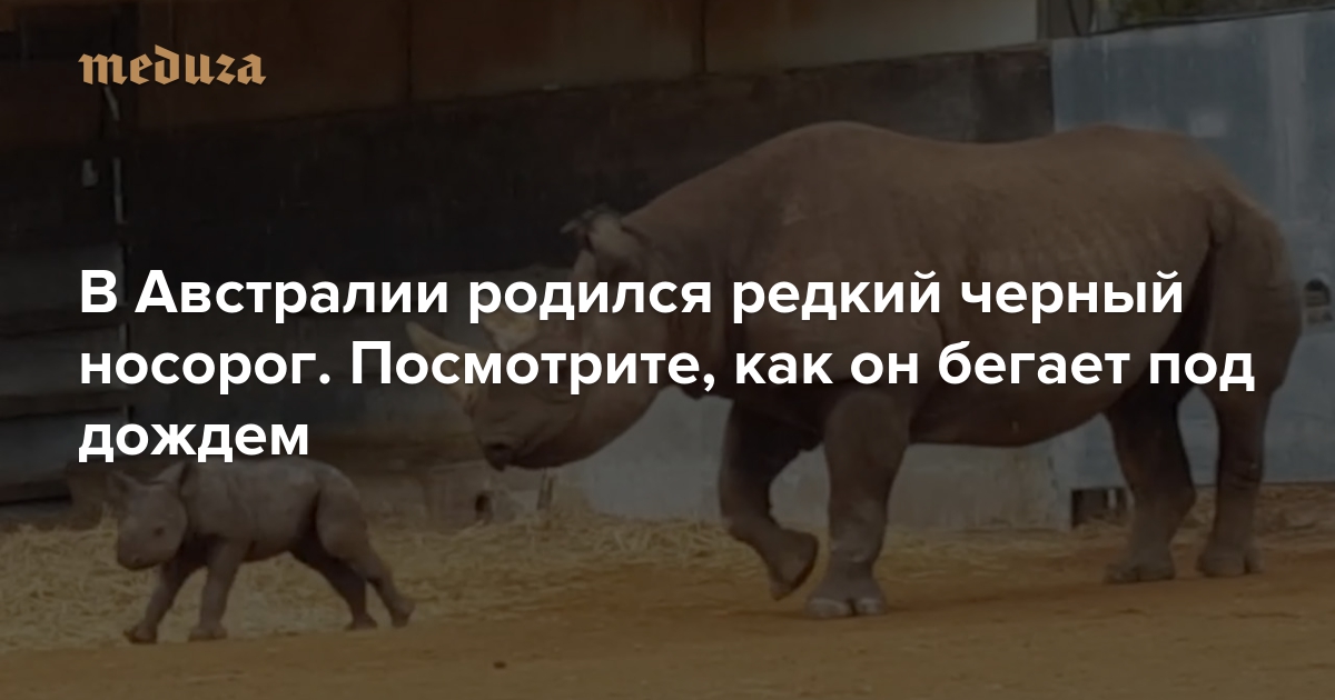 В Австралии родился редкий черный носорог. Посмотрите, как он бегает под дождем