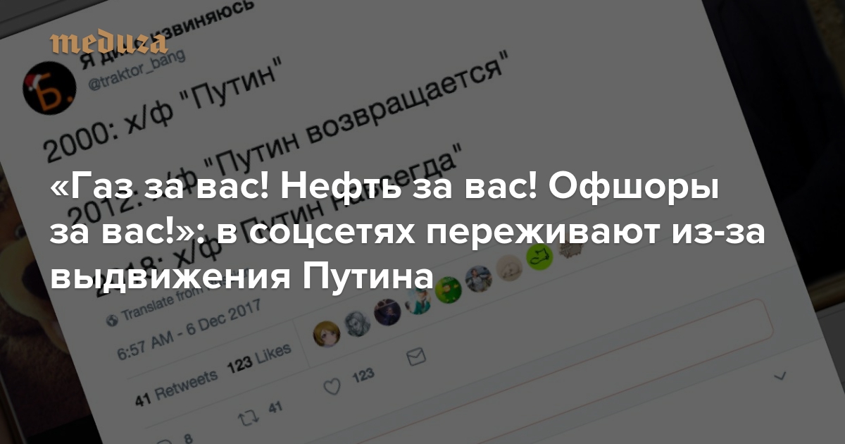 «Газ за вас! Нефть за вас! Офшоры за вас!»: в соцсетях переживают из-за выдвижения Путина