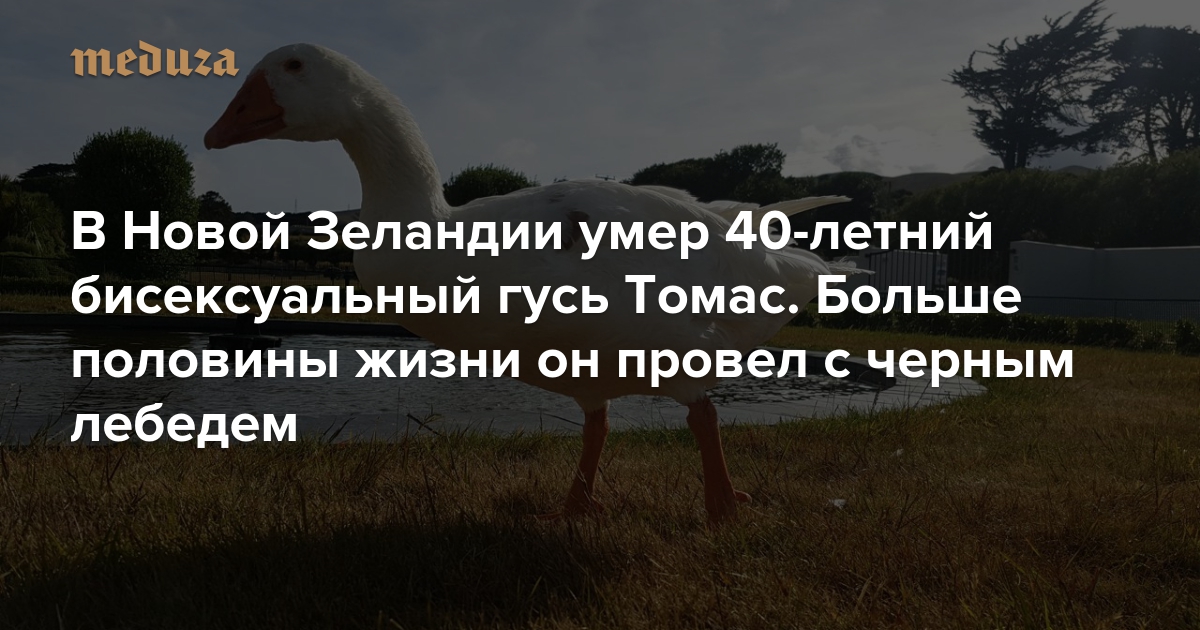 В Новой Зеландии умер 40-летний бисексуальный гусь Томас. Больше половины жизни он провел с черным лебедем