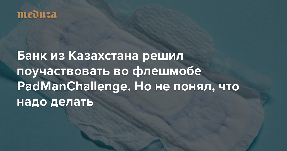 Спустя неделю в PadManChallenge решил поучаствовать Евразийский банк в Казахстане. Но что-то пошло не так: вместо селфи с прокладкой SMM-менеджер банка выложил фотографию сотрудницы с банковской картой. «Карта — это естественная часть жизни любой женщины, и мне бы хотелось, чтобы тема женского шопинга могла свободно обсуждаться в любой семье мира», — говорилось в посте банка. Также под фотографией было указано, что она вдохновлена Натальей Водяновой.