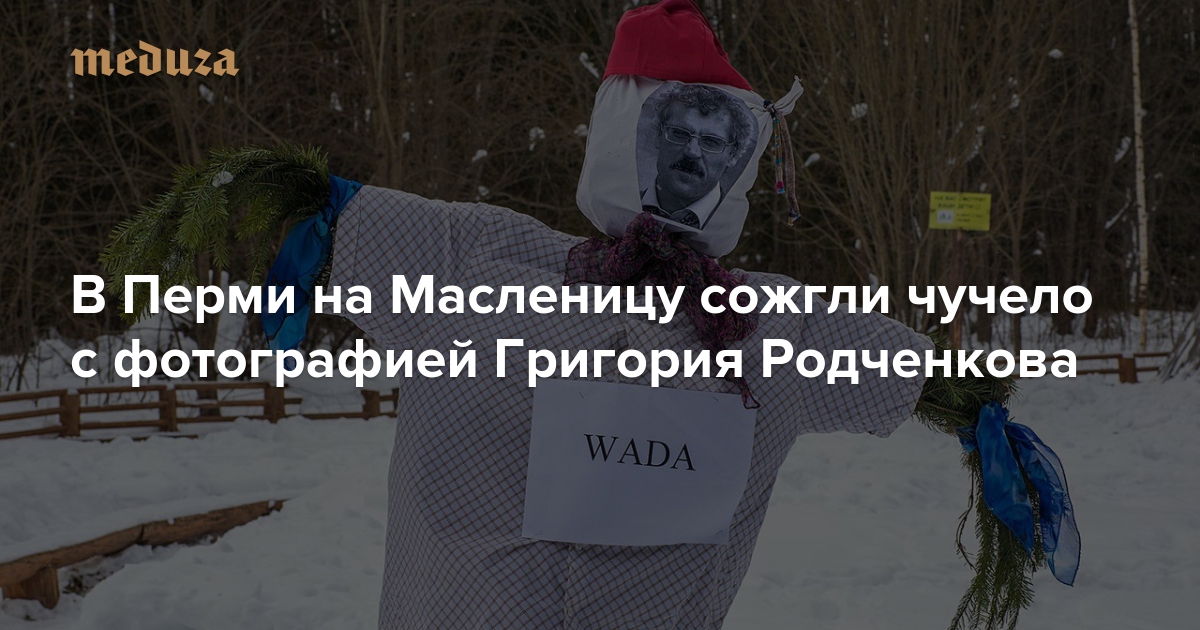 Жители Перми сожгли на Масленицу чучело с фотографией бывшего главы Московской антидопинговой лаборатории Григория Родченкова и надписью «WADA». По словам участника акции Павла Жигалова, Родченков испортил россиянам праздник — Олимпиаду.