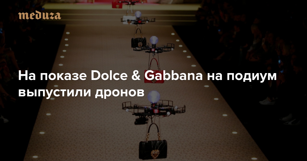 Показ дома Dolce & Gabbana на Неделе моды в Милане открыли дроны. Они пронесли над подиумом сумки, созданные этим модным домом.