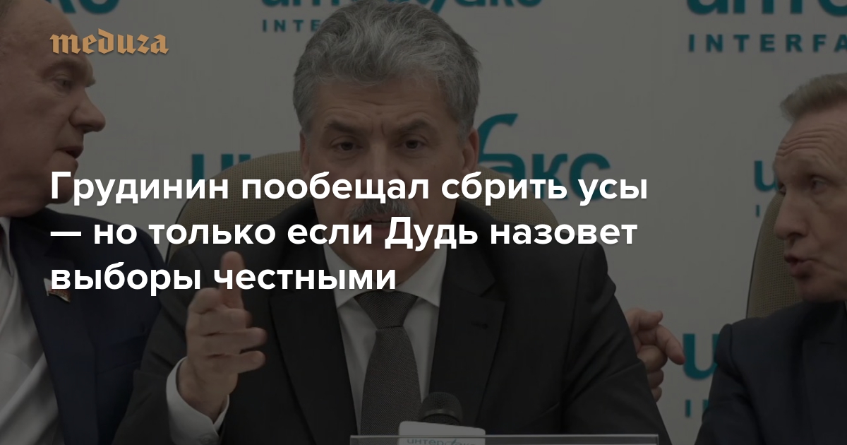 Геннадий Зюганов, сидевший рядом с Грудининым, попытался спасти усы кандидата: «При том, что [вас] поддержало 55% на одном участке и 66% на другом, теперь уже можно и бороду отпускать».