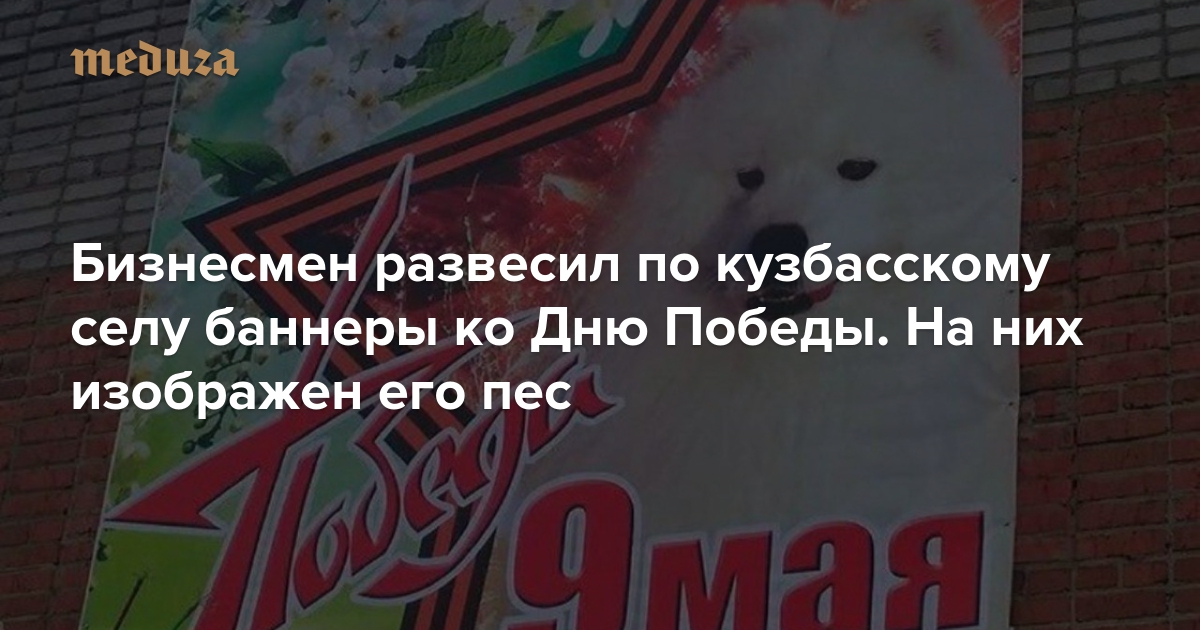 Бизнесмен развесил по кузбасскому селу баннеры ко Дню Победы. На них изображен его пес