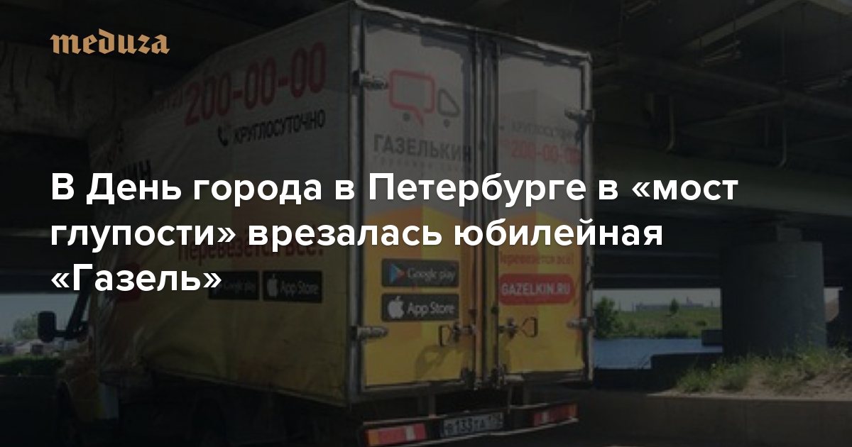 В Санкт-Петербурге в так называемый «мост глупости», расположенный на пересечении Софийской улицы и Ленсоветовской дороги, врезалась 150-я по счету «Газель». Об этом сообщается в твиттере моста, где ведется подсчет застрявших под сооружением автомобилей. Грузовик, попавший в аварию, принадлежит компании «Газелькин».