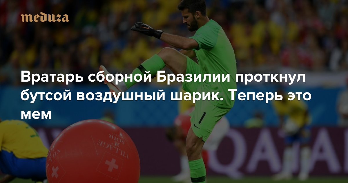 Во время матча сборных Бразилии и Швейцарии на чемпионате мира по футболу на поле вылетел большой красный воздушный шарик. Недалеко от него находился бразильский вратарь Алисон Бекер — и он не стал церемониться.