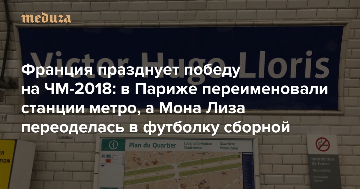 Франция празднует победу на ЧМ-2018: в Париже переименовали станции метро, а Мона Лиза переоделась в футболку сборной