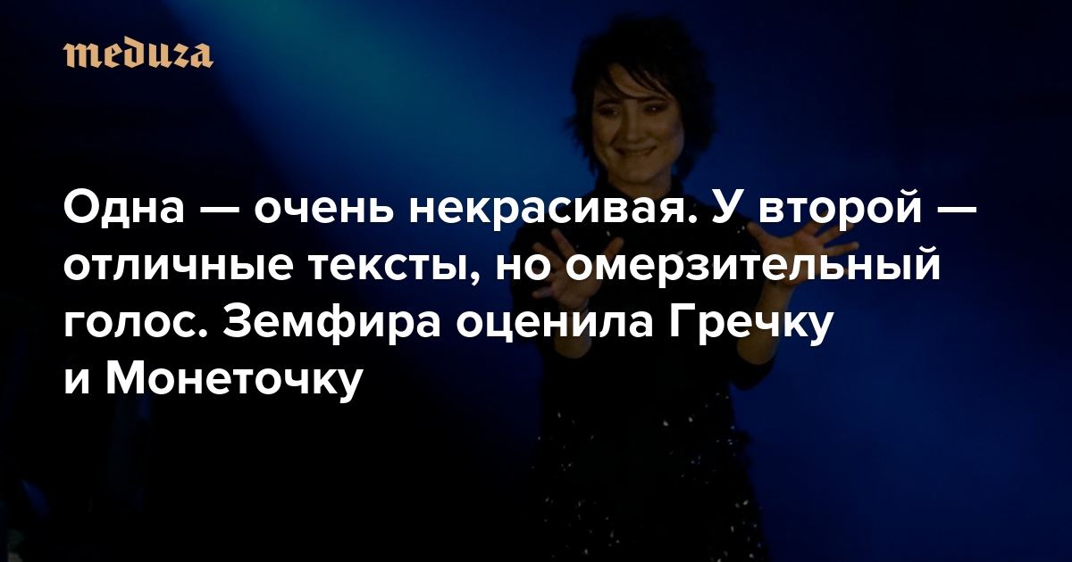 Одна — очень некрасивая. У второй — отличные тексты, но омерзительный голос. Земфира оценила Гречку и Монеточку