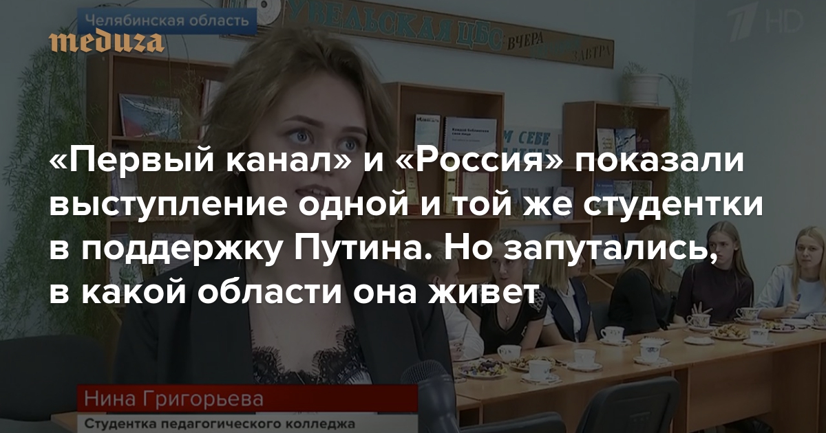«Первый канал» и «Россия» показали выступление одной и той же студентки в поддержку Путина. Но запутались, в какой области она живет