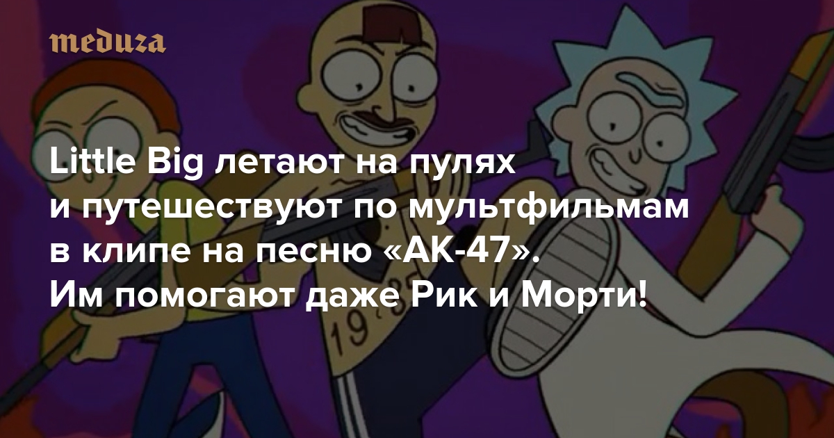 Little Big летают на пулях и путешествуют по мультфильмам в клипе на песню «AK-47». Им помогают даже Рик и Морти!