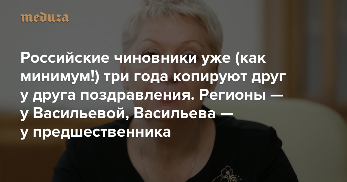 Российские чиновники уже (как минимум!) три года копируют друг у друга поздравления. Регионы — у Васильевой, Васильева — у предшественника