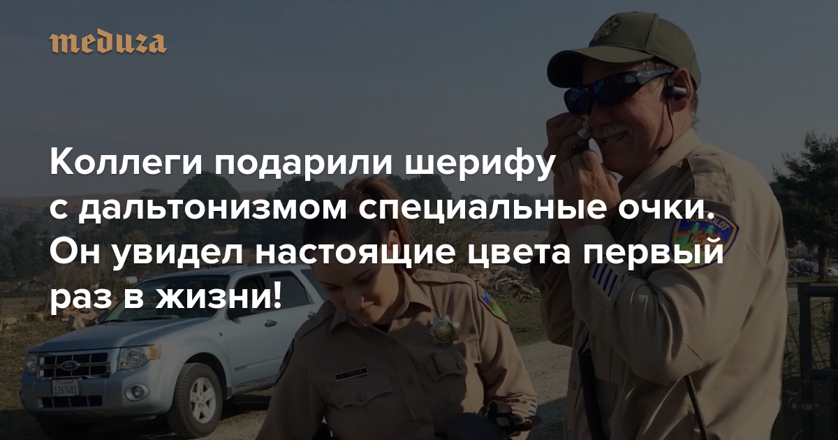 Заместитель шерифа в городе Юрика в Калифорнии Джеф Дишмон получил в подарок от коллег очки. Но не обычные, а специальные — они позволили Дишмону, который родился с дальтонизмом, впервые различить цвета.