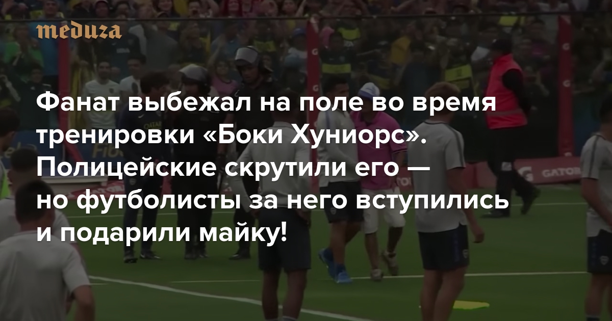 Фанат выбежал на поле во время тренировки «Боки Хуниорс». Полицейские скрутили его — но футболисты за него вступились и подарили майку!
