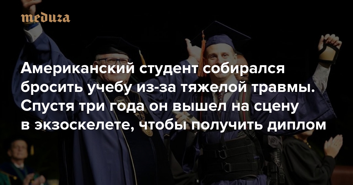 Американский студент собирался бросить учебу из-за тяжелой травмы. Спустя три года он вышел на сцену в экзоскелете, чтобы получить диплом