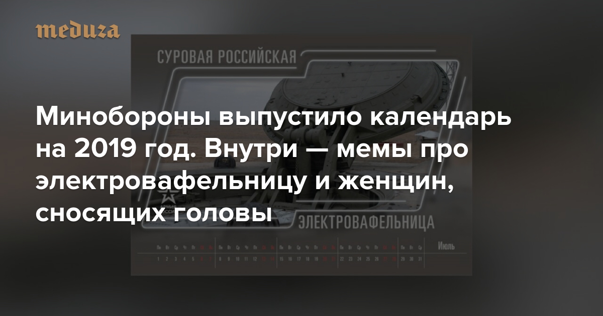 Минобороны выпустило календарь на 2019 год. Внутри — мемы про электровафельницу и женщин, сносящих головы