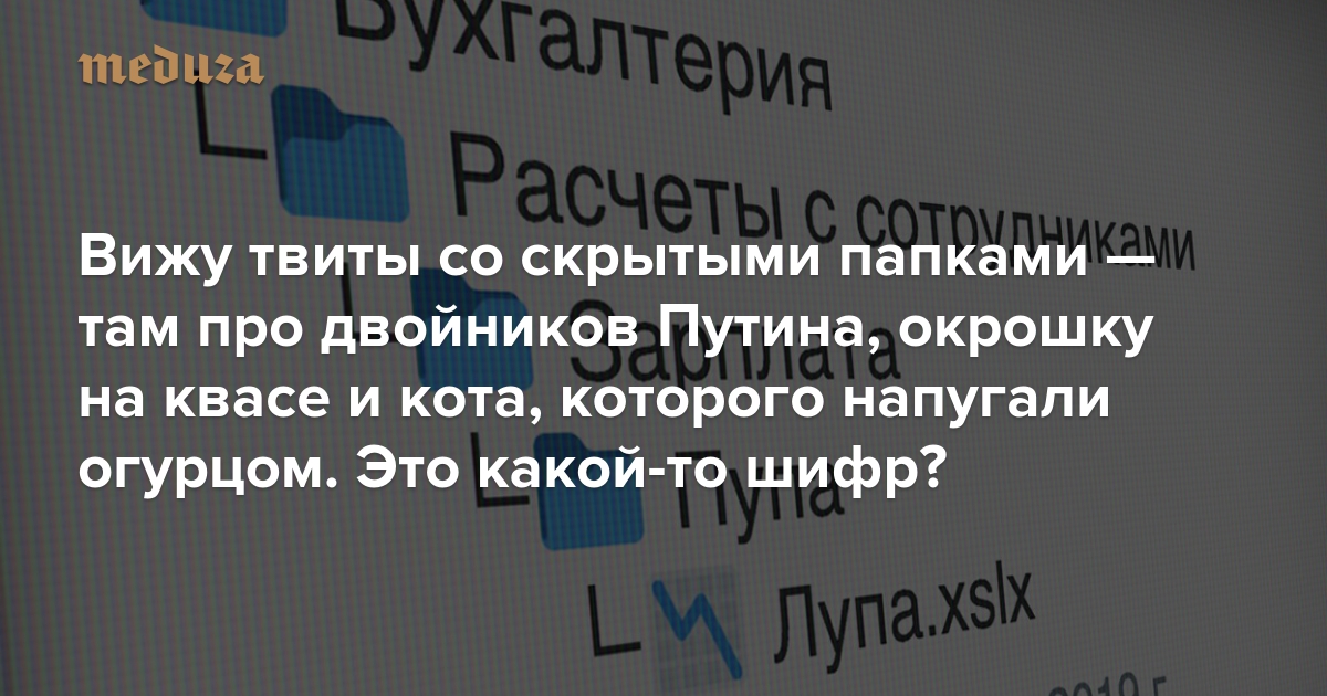 Вижу твиты со скрытыми папками — там про двойников Путина, окрошку на квасе и кота, которого напугали огурцом. Это какой-то шифр?